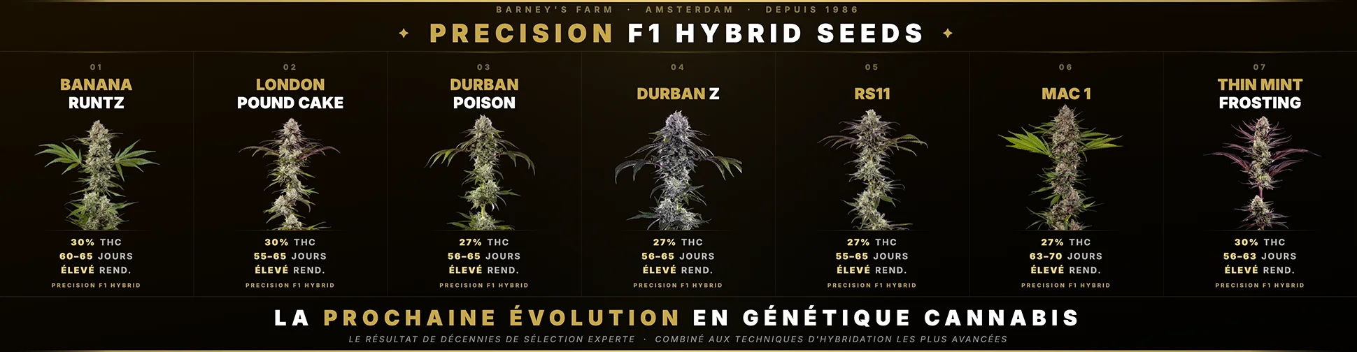 Alimentée par l'innovation scientifique, l'assurance qualité stricte et un focus sur l'augmentation des niveaux de THC, Barney's Farm garantit des graines de cannabis premium et haute performance à chaque fois.