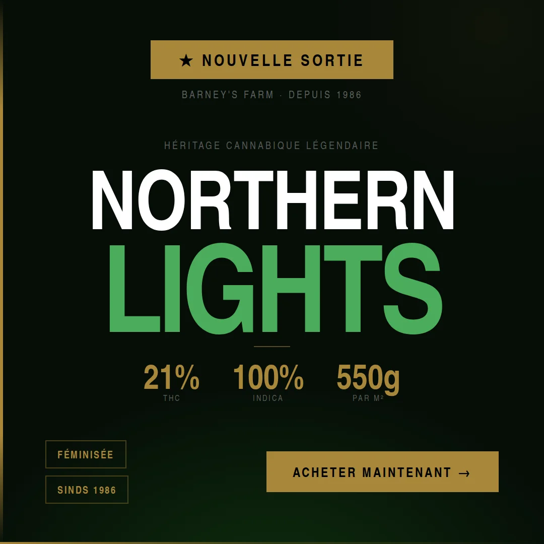 Lire les Détails +Barney’s Farm vous présente sa collection "Élite" de variétés de cannabis primées. Ces souches offrent toutes un héritage génétique hors-pair. Barney's sont des maîtres de la culture de cannabis et ont remporté plus de 40 coupes mondiales, notamment la Meilleur Indica, la Meilleur Sativa et la Meilleure Toutes Catégories. Commandez ces champions dès maintenant.