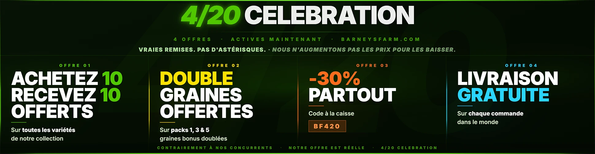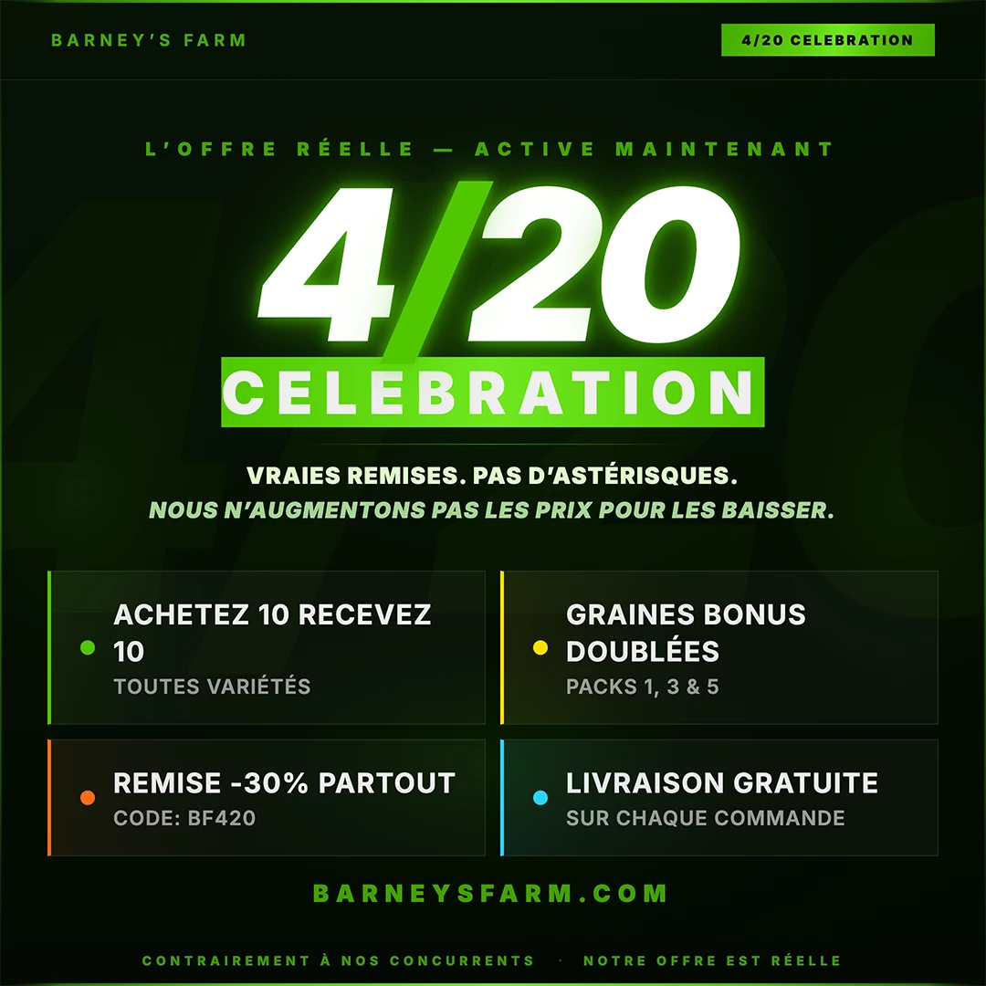 En tant que pionniers mondiaux dans la sélection de cannabis, nous nous consacrons à fournir à nos clients les graines de cannabis de la plus haute qualité du monde entier. Lorsque vous choisissez Barney's Farm, vous choisissez un endroit de confiance pour commander des graines de cannabis. Notre plateforme assure des transactions sécurisées, une expédition discrète et un service client exceptionnel.